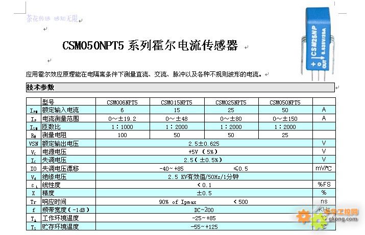 ¡ú CSM050NPT5ϵÁлô¶ûµçÁ÷´«¸ÐÆ÷