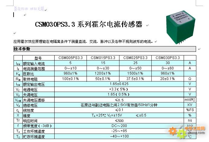 ¡ú CSM030PST3.3ϵÁлô¶ûµçÁ÷´«¸ÐÆ÷