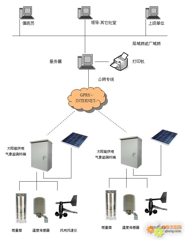 ÆøÏó¼à²âϵͳ¼à²âµã·Ö²¼¹ã£¬ÇÒ´ó¶à»·¾³¶ñÁÓ£¬¾ßÓÐÎÞµçÔ´¡¢²»Ò˲¼ÏßµÈÌØµã£¬¹ÊÏÖ³¡¼à²âÖն˺ËÐÄÉ豸ѡÓÃÎÒ¹«Ë¾Éú²úµÄGPRSµÍ¹¦ºÄ²â¿ØÖÕ¶Ë£¬¸ÃÉ豸¹¦ºÄµÍ£¬Ìå»ýС£¬ÌرðÊÊÓÃÓÚÆøÏó¼à²âϵͳ̫ÑôÄܹ©µç·½Ê½µÄÏÖ³¡Ó¦Ó㬿ɴó´ó½µµÍÌ«ÑôÄܹ©µç³É±¾ºÍÊ©¹¤³É±¾¡£