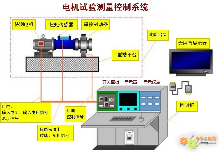 ϵͳΪµç»úÄ;ÃÊÔÑé¡¢ÐÔÄܲâÊÔÊÔÑéÉè¼Æ£¬ÓÉÐźŲɼ¯¿ØÖÆÆ÷¡¢¼ÆËã»úºÍÈí¼þ×é³É,ÅäºÏµç»úÊÔÑę́¼Ü¡¢²âÁ¿±äËÍÆ÷,¿ÉÒÔ²âÁ¿µç»úµÄÊäÈëµçѹ¡¢µçÁ÷¡¢Êä³öת¾Ø¡¢×ªËÙ¡¢ÊäÈëÊä³ö¹¦ÂÊ¡¢Ð§ÂʵÈÐÔÄܲÎÊý£¬´òÓ¡ÊÔÑ鱨¸æ£¬»æÖƸ÷ÖÖÐÔÄÜÇúÏß¡£×ª¾Ø×ªËÙ´«¸ÐÆ÷²âÁ¿µç»úµÄÊä³öŤ¾ØºÍתËÙ£¬¸ºÔزÉÓý»Á÷·¢µç»ú£¬·¢µç»ú·¢³öµÄ½»Á÷µç¾¿ØÖÆÆ÷2Äæ±äΪֱÁ÷µç·´À¡¸øµç»ú¹©µç£¬Ê¹ÓõçÁ¿±äËÍÆ÷½«¿ØÖÆÆ÷1¡¢¿ØÖÆÆ÷2µÄÊäÈëÊä³öµçѹºÍµçÁ÷ת»»Îª±ê×¼µçѹÐźţ¬ÓɼÆËã»ú²É¼¯¡£¿ÉÒÔͨ¹ý¼ÆËã»ú¿ØÖÆ¿¨Êä³öµçѹÐźŸø¿ØÖÆÆ÷£¬Íê³É¶Ôµç»úתËÙºÍŤ¾ØµÄ¿ØÖÆ¡£ÏµÍ³¿ÉÒÔÍê³ÉµÄ²âÁ¿ÏîÄ¿£º¿ØÖÆÆ÷µÄÊäÈëÊä³öµçÁ÷ºÍµçѹµÈµç²ÎÊý£¬µç»úµÄÊäÈëµçѹ¡¢µçÁ÷¡¢Êä³öת¾Ø¡¢×ªËÙ¡¢Ð§ÂʼÆËãµÈ£¬¿É¸ù¾ÝÓû§ÒªÇó¶¨ÖÆÊä³ö±¨±íºÍÇúÏ߸ñʽ¡£ÏµÍ³ÔÚ¹¤Òµ¿ØÖƼÆËã»úÉϹ¹½¨£¬ËùÓÐÊäÈëÊä³öÐźÅͨ¹ý¸÷Öֲɼ¯¿ØÖÆ¿¨£¨×ª¾Ø×ªËÙ¹¦ÂʲâÁ¿¿¨¡¢A/D¿¨¡¢D/A¿¨£©Ö±½Ó½ÓÈë¼ÆËã»ú»òÓɼÆËã»úÊä³ö¡£