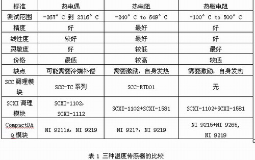 綜(zong)上(shang)所(suo)述(shu),熱(re)電(dian)偶(ou)價(jia)格(ge)便(bian)宜(yi),而(er)且(qie)有(you)很(hen)快(kuai)的(de)響(xiang)應(ying)時(shi)間(jian),但(dan)是(shi)它(ta)精(jing)度(du)不(bu)高(gao)而(er)且(qie)最(zui)不(bu)穩(wen)定(ding),最(zui)不(bu)靈(ling)敏(min)。熱(re)電(dian)偶(ou)僅(jin)僅(jin)是(shi)讀(du)取(qu)頭(tou)和(he)線(xian)之(zhi)間(jian)的(de)溫(wen)度(du)差(cha)異(yi),而(er)RTD和熱敏電阻是讀取絕對溫度值。RTD是(shi)可(ke)靠(kao)性(xing)的(de)最(zui)佳(jia)選(xuan)擇(ze),而(er)且(qie)最(zui)為(wei)穩(wen)定(ding),精(jing)度(du)最(zui)高(gao)。但(dan)是(shi)它(ta)的(de)響(xiang)應(ying)時(shi)間(jian)太(tai)長(chang)而(er)且(qie)因(yin)為(wei)它(ta)需(xu)要(yao)一(yi)個(ge)電(dian)流(liu)源(yuan),因(yin)此(ci)它(ta)有(you)自(zi)熱(re)產(chan)生(sheng)。熱(re)敏(min)電(dian)阻(zu)輸(shu)出(chu)很(hen)快(kuai)而(er)且(qie)相(xiang)對(dui)便(bian)宜(yi),但(dan)是(shi)它(ta)易(yi)碎(sui)而(er)且(qie)溫(wen)度(du)範(fan)圍(wei)有(you)限(xian)。它(ta)同(tong)樣(yang)需(xu)要(yao)一(yi)個(ge)電(dian)流(liu)源(yuan)而(er)且(qie)比(bi)RTD的自熱現象更為嚴重,同時它是非線性的(表1)。