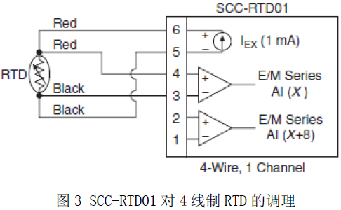 熱電阻(RTD) 熱(re)電(dian)阻(zu)是(shi)中(zhong)低(di)溫(wen)采(cai)集(ji)時(shi)常(chang)用(yong)的(de)一(yi)種(zhong)溫(wen)度(du)傳(chuan)感(gan)器(qi),它(ta)的(de)主(zhu)要(yao)特(te)點(dian)是(shi)測(ce)量(liang)精(jing)度(du)高(gao),性(xing)能(neng)穩(wen)定(ding),靈(ling)敏(min)度(du)高(gao)。熱(re)電(dian)阻(zu)是(shi)基(ji)於(yu)金(jin)屬(shu)導(dao)體(ti)或(huo)半(ban)導(dao)體(ti)的(de)電(dian)阻(zu)值(zhi)隨(sui)溫(wen)度(du)的(de)增(zeng)加(jia)而(er)增(zeng)加(jia)這(zhe)一(yi)特(te)性(xing)來(lai)進(jin)行(xing)溫(wen)度(du)測(ce)量(liang)的(de),其(qi)大(da)都(dou)由(you)純(chun)金(jin)屬(shu)材(cai)料(liao)製(zhi)成(cheng),目(mu)前(qian)使(shi)用(yong)最(zui)多(duo)的(de)是(shi)鉑(bo)。熱(re)電(dian)阻(zu)需(xu)要(yao)電(dian)源(yuan)激(ji)勵(li),且(qie)不(bu)能(neng)夠(gou)瞬(shun)時(shi)測(ce)量(liang)溫(wen)度(du)的(de)變(bian)化(hua)。工(gong)業(ye)用(yong)熱(re)電(dian)阻(zu)一(yi)般(ban)采(cai)用(yong)Pt100,Pt1000,Cu50,Cu100等多種型號。 熱電阻的引線對測量結果會有較大的影響,目前熱電阻的引線主要有三種方式:erxianzhi,sanxianzhi,sixianzhi。erxianzhishizairedianzudeliangduangelianyigendaoxianlaiyinchudianzuxinhao,zhezhongyinxianfangfahenjiandan,danshiceliangjingdubugao。zairedianzuyiduanlianjieyigenyinxian,lingyiduanlianjielianggenyinxiandefangshichengweisanxianzhi,zhezhongfangshitongchangyudianqiaopeitaoshiyong。yinweiredianzuzuoweidianqiaoshangyigeqiaobidedianzu,qilianjiedaoxianyeshiqiaobideyibufen,erzhebufendianzushiweizhiqiesuihuanjingwendubianhuade,huizaochengceliangwucha。caiyongsanxianzhi,jiangdaoxianyigenjiedaodianqiaodedianyuanduan,qiyulianggenfenbiejiedaoredianzusuozaideqiaobijixianglinqiaobishang,zheyangjiaohaodixiaochuledaoxiandianzudailaideceliangwucha。redianzuliangduangelianjielianggendaoxiandefangshichengweisixianzhi,qizhonglianggenweiredianzutigongjilidianliu,badianzuzhuanhuanchengdianyaxinhao,zaitongguolinglianggenshuchudianyagongcaiji,zhezhongyinxianfangshikewanquanxiaochuyinxiandianzudeyingxiang,zhuyaoyongyugaojingdudewendujiance,danchengbenyezuigao。 NI SCC-RTD01是針對熱電偶調理的雙通道模塊,可連接2、3或4線鉑電阻RTD(圖3)。NI SCC-RTD01的每一通道都帶有一個增益為25的放大器和一個30Hz低通濾波器,每一模塊上還提供用於1或2個RTD的1mA激勵源。NI SCXI-1102模塊與NI SCXI-1581電流激勵模塊一起使用,可以提供32通道的高精度RTD或熱敏電阻調理。1102帶有一個2 Hz低通濾波器,1581則提供穩定的100μA電流源,從而確保測量精度。由於SCXI采用模塊化設計,在應用需求改變時可以方便地擴展數據采集係統。