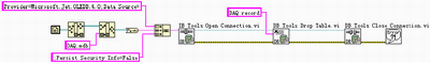 利用以上兩種方式雖然可以連接到數據庫文件,但一旦文件的位置發生變化則需要重新配置連接,徆丌方便。使用txt格式打開DAQ.udl文件會發現其內容為:[oledb] ; Everything after this line is an OLE DB initstring Provider=Microsoft.ACE.OLEDB.12.0;Data Source=C:\Documents and Settings\Administrator\桌麵\DAQ.mdb;Persist Security Info=False [oledb];後麵的一句是注釋,後麵分別是DAQ數據庫的一些信息,其中包含了路徑信息,位亍Data Source=乊後。在LabVIEW編程中,可以配合使用一些路徑獲取VI和字符串VI,代替UDL文件將數據庫的位置信息告訴DB Tools Open Connection.vi(圖9)。