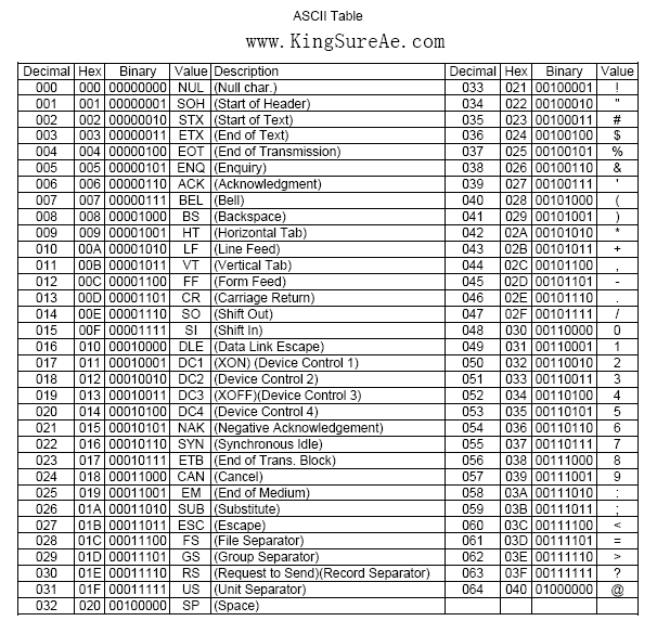 ASCII是在工業自動化,現場總線,PC BASE中應用最多的通訊協議,本人整理的ASCII表,以供各位技術人員參考!