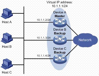 初始情況下,Device A是Master路由器並承擔轉發任務,Device B和Device C是