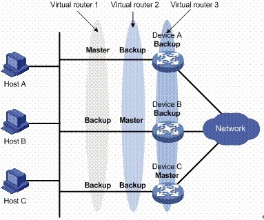 個以上的虛擬路由器,每個虛擬路由器都包括一個Master路由器和若幹個Backup