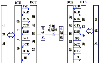 其次,RS-232C標準中所提到的“發送”和“接收”,都是站在DTE立場上,而不是站在DCE的立場來定義的。由於在計算機係統中,往往是CPU和I/O設備之間傳送信息,兩者都是DTE,因此雙方都能發送和接收。