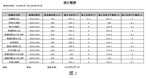 配變監控管理係統提供強大的數據統計、分析功能,為用戶提供準確實用的統計數據,為配變科學管理提供關鍵的數據。統計數據如圖2。