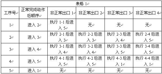前言 順序控製在工業控製應用中占有較大的比例,在施耐德電氣的低端PLC中可以使用相應的編程方式實現,如在TWIDO/ MACRO係列PLC中可以使用Grafcet方fang式shi編bian程cheng來lai實shi現xian,但dan鑒jian於yu很hen多duo使shi用yong者zhe對dui這zhe種zhong編bian程cheng方fang式shi不bu是shi很hen熟shu悉xi,在zai這zhe裏li介jie紹shao一yi種zhong用yong梯ti形xing圖tu實shi現xian順shun序xu控kong製zhi的de方fang法fa。為wei便bian於yu說shuo明ming,我wo們men假jia定ding有you某mou一yi設she備bei有you以yi下xia要yao求qiu,並bing以yi這zhe種zhong設she備bei的de控kong製zhi方fang法fa的de實shi現xian作zuo為wei實shi例li來lai講jiang述shu。設she備bei的de運yun行xing分fen為wei5個工序,每個工序有數目不等的非正常順序出口,如果設備正常運行時,按照1->2->3->4->5->1的控製順序執行,如在某一工序上產生非正常出口需求,按照不同需要執行動作。假定我們總結該設備的運行規律如下表,其中x-y為主控製順序以外的額外動作要求,例如相應的報警處理。 表格1