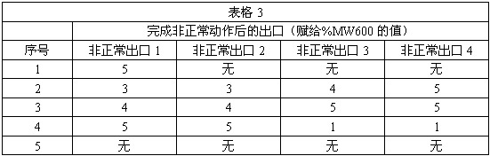 在表格3中,用“序號”列的編號表示非正常出口編號的十位數,用非正常出口對應的數字表示非正常出口的個位數,按此規律,表格3中“序號3”“非正常出口3”對應的5表示在非正常出口33的返回工序號。 表格3