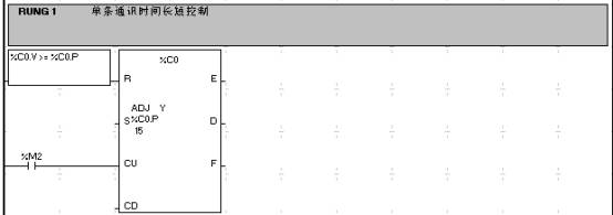 從上麵幾點分析著手,完全可以將與多個Modbuszizhantongxunyouhua,zhiyaochulihaozaimouyishikejiangyaoyuzhitongxundezizhandizhitianxiehao,zaitongxunshujuquyongjiaohuanzhilingfasongchuquzhihou,jishijiangduhuilaideshujuquchubingbaocunhaojike。 下麵對實現這一功能的程序的部分程序段做一說明,在這個程序中以讀施耐德電氣的3台ATV31變頻器的狀態及輸出頻率,並通過通訊控製ATV31的運行頻率。為減小本文的長度,在這個程序ATV31的啟停及正反轉控製用端子實現,在實際應用中,用通訊完成變頻器的啟停及正反轉控製也是完全沒有問題的。 與每一個子站通訊的時間長度控製,其中M2由係統時鍾位S5產生:
