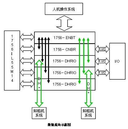 1.繼續采用原有老筒倉係統的I/O,降低了用戶的硬件成本。 2.保留了原有老筒倉係統Remote I/O適配器(1771-ASB)的配置及其它的所有配置,隻是將原有的處理器更新,最低限度的減少了改造老係統的風險性。 3.將獨立的出口線部分的I/O聯接到整個係統來,實現了全部I/O統一協調控製的功能,改變了原來使用出口線需要強製老筒倉機械設備信號的情況(使用出口線時需要用到老筒倉係統中的設備)。 4.采用一個1756-L55M14處理器,其強大的功能保證了多流程同時操作的處理能力和速度。 5.Gateway平台將各種通訊形式彙集到一起,方便了處理器訪問所有I/O,保證了全部控製的統一協調性。同時方便了不同網絡上的設備間的通訊和工程師站對不同網絡下的設備維護、(程序)修改工作。(見數據流向示意圖)