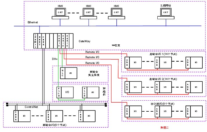 經改造後的係統在硬件上保留了原PLC-5係統的I/O模板和Remote I/O適配器(包括筒倉部分和出口線部分),增加了新筒倉部分的ControlLogix係統的I/O及處理器。
