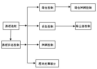 從流程選擇開始,就針對該條流程的狀態進行跟蹤,包括流程中各個設備的狀態、閘閥到位情況、除塵器運行情況等等,並向大型設備發出流程啟動和停止信號。在流程選取後,流程狀態控製程序就像被選中的設備標識被第幾條流程(流程1-4)選中的標誌,以便選擇的設備按照流程規定的順序運行。