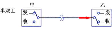 圖1 比如,計算機主機用串行接口連接顯示終端,而顯示終端帶有鍵盤。這樣,一方麵鍵盤上輸入的字符送到主機內存;另一方麵,主機內存的信息可以送到屏幕顯示。通常,往鍵盤上打入1gezifuyihou,xianbuxianshi,jisuanjizhujishoudaozifuhou,lijihuisongdaozhongduan,ranhouzhongduanzaibazhegezifuxianshichulai。zheyang,qianyigezifudehuisongguochenghehouyigezifudeshuruguochengshitongshijinxingde,jigongzuoyuquanshuanggongfangshi。 2、半雙式方式(half duplex) 若(ruo)使(shi)用(yong)同(tong)一(yi)根(gen)傳(chuan)輸(shu)線(xian)既(ji)作(zuo)接(jie)收(shou)又(you)作(zuo)發(fa)送(song),雖(sui)然(ran)數(shu)據(ju)可(ke)以(yi)在(zai)兩(liang)個(ge)方(fang)向(xiang)上(shang)傳(chuan)送(song),但(dan)通(tong)信(xin)雙(shuang)方(fang)不(bu)能(neng)同(tong)時(shi)收(shou)發(fa)數(shu)據(ju),這(zhe)樣(yang)的(de)傳(chuan)送(song)方(fang)式(shi)就(jiu)是(shi)半(ban)雙(shuang)工(gong)製(zhi),如(ru)圖(tu)2所示。采用半雙工方式時,通信係統每一端的發送器和接收器,通過收/發開關轉接到通信線上,進行方向的切換,因此,會產生時間延遲。收/發開關實際上是由軟件控製的電子開關。