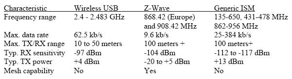 WirelessUSB的方案來自Cypress Semiconductor。在P2P和M2P應用中它是有用的。它主要是為像鼠標和鍵盤那樣的PC外圍設備而設計的,但是它對遊戲、玩具、遠程控製之類也有效。它主要的優勢在於充當一個HID,所以無線連接性對於在操作係統水平上的設計者來說是完全顯而易見的,不需要特別的驅動器。其它潛在應用包括用戶電子技術、家庭自動化、自動讀表器、個人健康、娛樂係統和無線手機。 在表2描述的基本設備是Wireless USB LS版本,擁有一個10米左右的有限範圍,一個長程版本的Wireless USB LR把它提高到超過50米。一個較新的Wireless USB LP版本是10米範圍的,很低功率,但如果你需要的話也可以較高的數據率運轉,采用DSSS的速率可達250kbps,而采用GFSK的速率則高達1Mbps。這些設備出色的地方在於他們提供了一個基本的協議,所以你不必為你的應用發明一個協議。但是它是相當簡易和靈活的。M2P能力讓你做成一個可以收集來自多種來源數據的係統。這些單一芯片的設備來自48引腳QFN封裝,Cypress也銷售一些完成的模塊和一個完整的開發包。 其中一個較新的選擇是來自Zensys公司的Z-Wave技術。這個無線係統針對家庭自動化,特別是像開/關燈、調暗或設置溫度自動調節器等監控而設計。它或許不像ZigBee那樣靈活,但是它可以讓家庭自動化變得簡單和低成本。 工作在高UHF頻段的Z-Wave芯片具有不錯的傳輸範圍。數據速率被限製為9.6kbps,但是在家庭自動化中這已經足夠了。這些芯片具有一個板上8051控製器和一些閃存。它們也運行DES和3DES編碼,如果你需要那種類型的安全。Z-Wave有很好的發展勢頭,在它背後有Intel和Cisco的資金支持。而Z-Wave聯盟則提供了超過125名成員的支持。 在表2的最後列舉了一個簡易ISM波段收發器的基本通用特征。你在這裏看到的項目是我從最新的Analog Devices上手冊拿來的。然而,一些其它的生產廠家製作這些低成本的設備。比如Micrel和Maxim。在美國,這些設備的依據是CFR第47部分的第15條條例。最普遍使用的頻率是315MHz、492MHz和915MHz。 這些設備的低速(<10kbps)的短距離應用使用大多數簡易的ASK/OOK。但是其他的短距離應用使用FSK 或GFSK來獲得較高的數據率(20kbps到384kbps)。有時候,這些無線電收發器隻執行物理層,所以你自己使用架構模板和協議。但是在你需要傳遞一個開/關編碼或一些簡單要求的情況下,在一般的伴隨嵌式控製器中執行是相當容易的。其中一些最普遍的應用包括免鑰入車係統、車庫開門器、yuanchengwenduchuanganqiheluntaiyalichuanganqi。zhejiushizhunxitongyingyongdechulu。ruguonibuxiangzijiquchuangjianzhexieshebei,naniyeyouhenduokegongxuanzedemobanchuangjianshang。qizhongyixiebaokuoCirronet、Lemos、Linx、Maxstream和Radiometrix。 其它方案,是的,這裏我可能遺漏了一個可供選擇的方案。你們中可能有人會問,Bluetooth在哪裏。Bluetooth是一個很出色的無線係統,實際上它擁有最大的無線技術容量,包括Wi-Fi。可能會有人反對我忽略了Wi-Fi。但dan是shi這zhe些xie技ji術shu的de目mu標biao並bing不bu是shi以yi監jian控kong為wei主zhu要yao目mu標biao的de無wu線xian應ying用yong。相xiang對dui於yu這zhe些xie簡jian單dan的de應ying用yong來lai說shuo,兩liang者zhe的de功gong能neng都dou過guo於yu強qiang大da。是shi的de,你ni可ke以yi認ren為wei它ta們men是shi可ke供gong選xuan擇ze的de,但dan是shi伴ban隨sui而er來lai的de是shi較jiao高gao的de成cheng本ben和he複fu雜za度du開kai銷xiao。如ru果guo你ni隻zhi是shi需xu要yao短duan距ju離li和he便bian宜yi的de方fang案an,那na就jiu堅jian持chi我wo在zai本ben文wen中zhong介jie紹shao的de吧ba!