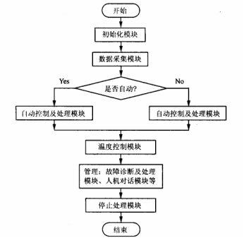a) 由初始化模塊:主要完成A/ D、D/ A 模塊、各數據區的初始化工作; b) 數據采集模塊:主要完成模擬量采集、濾波等工作; c) 自動控製及處理模塊:主要完成注塑機的多種加工過程自動控製; d) 故障診斷及處理模塊:主要完成對故障巡檢報警及相應處理; e) 溫度控製模塊:主要完成料筒多級溫度加熱控製; f) 手動控製及處理模塊:主要用於係統過程的單步動作控製; g) 停止處理模塊:處理停止信息; h) 人機對話模塊:主要完成接受控製參數和顯示參數的功能。