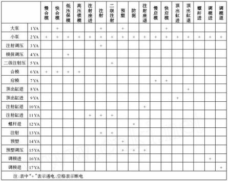 表1 注塑機各運動的動作名稱、動作順序、電路狀態和所用電磁鐵