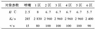 式中, t 為溫度,u 為功率,τ為係統時滯,Kt 為係統時間常數,K 為係統常數,s 為拉氏變換因子。