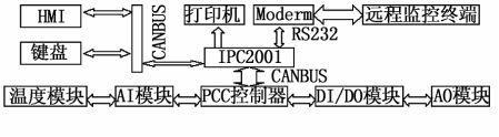 控製係統硬件配置方式采用現代高檔設備通用的上下位機結構。上位機為操作監控製部分, 采用帶486DX2CPU 的IPC2001 , 安裝了B&R Automation Runtime V2.60 操作係統,TFT 真彩屏,麵板附帶注塑機專用30 鍵小鍵盤。下位機包括PCC 控製器及擴展模塊,其配置主要考慮滿足控製係統的現有功能需求,同時,適當預留功能擴展的需要。