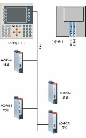 (1)主控製係統采用PP41係統,驅動係統采用ACOPOS多功能驅動器,CAN bus(500k傳輸速率)總線控製方式;