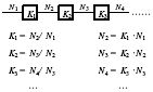 根據造紙工藝要求, 紙機車速(v) 和抄紙定量(q) 之間存在下列關係:Δq/ q =Δv/ v (其中Δq 是定量容許公差範圍, Δv 是紙機車速容許公差範圍) 。為了保證紙的定量能夠在許可公差範圍之內, 要求紙機車速穩定, 速度隻能在一定的許可範圍內波動, 通常生產時, 紙機車速偏差Δv 不超過±( 1.5 %~1 %) , 紙板機車速不超過±(1.5 %~21 %) 。因此, 穩定的紙機車速能保證紙的定量穩定, 並避免斷紙及其他一些問題。紙機各個分部的線速度隨著紙的品種、抄紙速度、紙張水分含量等因素改變, 但在某一品種某一速度區, 各個分部間速度的比例基本不變, 紙機前後各分部間速度是一種比例協調關係, 如圖2 所示, 前一分部速度是後一分部速度的Ki 倍。紙機傳動還要保證能夠準確地調整各個分部的速度。