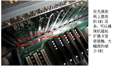 但工控機的使用環境複雜多變,某些環境是具有較強的振動性的,采用EMI彈片設計容易在振動的環境下失去彈片的彈性。工控機采用的機箱材料為1.2mmdeyouzhigangban,benshenjuyouyouxiudekangxingbiantexing,youyugongkongjijixiangduoweiwoshide,dingbugangbanzishendezhonglianghegangcaitexingyijingnenggoubaozhengjixiangbizhijiandeyanmijiechu。youxiudegongkongjijixiangzaibucaiyongEMI彈片的時候也完全可以通過CE,FCC等EMC認證。如果某些對電磁兼容極為嚴格的環境,例如軍工行業,我們會推薦客戶在機箱接縫處使用更為可靠的金屬導電布。
