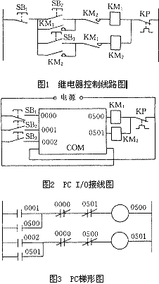 摘 要:通過舉例,介紹了四種梯形圖的設計方法,並指出了每種方法的特點。 關鍵詞:可編程控製器 梯形圖 邏輯代數 一、引言 可編程控製器是將繼電器控製的概念和設計思想與計算機技術及微電子技術相結合而形成的 專門從事邏輯控製的微機係統。在PCxitongyingyongzhong,tixingtudeshejiwangwangshizuizhuyaodewenti。tixingtubudanyanyonghefazhanledianqikongzhijishu,erqieqigongnenghekongzhizhilingyiyuanyuanchaoguodianqikongzhifanchou。tabujinkeshixianluojiyunsuan,haijuyousuanshuyunsuan、數據處理、聯(lian)網(wang)通(tong)信(xin)等(deng)功(gong)能(neng),是(shi)具(ju)有(you)工(gong)業(ye)控(kong)製(zhi)指(zhi)令(ling)的(de)微(wei)機(ji)係(xi)統(tong)。由(you)於(yu)梯(ti)形(xing)圖(tu)的(de)設(she)計(ji)是(shi)計(ji)算(suan)機(ji)程(cheng)序(xu)設(she)計(ji)與(yu)電(dian)氣(qi)控(kong)製(zhi)設(she)計(ji)思(si)想(xiang)結(jie)合(he)的(de)產(chan)物(wu),因(yin)此(ci),在(zai)設(she)計(ji)方(fang)法(fa)上(shang)與(yu)計(ji)算(suan)機(ji)程(cheng)序(xu)設(she)計(ji)和(he)電(dian)氣(qi)控(kong)製(zhi)設(she)計(ji)既(ji)有(you)著(zhe)相(xiang)同(tong)點(dian),也(ye)有(you)著(zhe)不(bu)同(tong)點(dian)。本(ben)文(wen)對(dui)開(kai)關(guan)量(liang)控(kong)製(zhi)係(xi)統(tong)梯(ti)形(xing)圖(tu)的(de)設(she)計(ji),提(ti)出(chu)了(le)四(si)種(zhong)常(chang)用(yong)方(fang)法(fa)。二(er)、替代設計法 所謂替代設計法,就是用PC機的程序,替代原有的繼電器邏輯控製電路。它的基本思想是: 將原有電氣控製係統輸入信號及輸出信號做為PC的I/O點,原來由繼電器―接觸器硬件完成的邏輯控製功能由PC機的軟件―梯形圖及程序替代完成。例如,電動機正反轉控製電路,原電氣控製線路圖如圖1所示。由PC控製替代後,其I/O接線 圖和梯形圖分別如圖2、3所示。