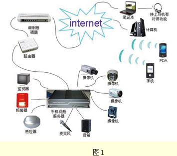 移動網絡攝像機和視頻服務器在開啟後,通過已連接的路由器,可直接連接到Internet網絡(可獨立運作於標準網絡環境,無須外接計算機),然後將拍攝到的影音視頻信號壓縮成M-JPEG,再發送到Internet,而用戶端設備則變成了我們日常用的手機。手機通過GPRS上網後,通過查看設備的IP地址或者到專門的網站,就可以看到移動網絡攝像機中拍攝到的影音文件了。