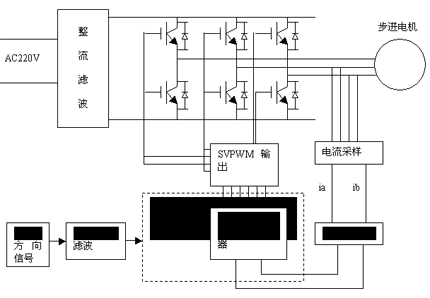 摘 要:本ben文wen根gen據ju正zheng弦xian電dian流liu細xi分fen驅qu動dong的de原yuan理li,設she計ji出chu三san相xiang混hun合he式shi多duo細xi分fen步bu進jin電dian機ji驅qu動dong器qi,係xi統tong采cai用yong電dian流liu跟gen蹤zong和he脈mai寬kuan調tiao製zhi技ji術shu,使shi電dian機ji的de相xiang電dian流liu為wei相xiang位wei相xiang差cha120°的正弦波,功率驅動電路采用六隻MOS管。該驅動器解決了傳統步進電機低速振動大、有共振區、噪音大等缺點,提高了步距角分辨率和驅動器的可靠性。 關鍵詞:混合式步進電機;細分驅動;SVPWM 1 前言 步(bu)進(jin)電(dian)機(ji)是(shi)一(yi)種(zhong)開(kai)環(huan)伺(si)服(fu)運(yun)動(dong)係(xi)統(tong)執(zhi)行(xing)元(yuan)件(jian),以(yi)脈(mai)衝(chong)方(fang)式(shi)進(jin)行(xing)控(kong)製(zhi),輸(shu)出(chu)角(jiao)位(wei)移(yi)。與(yu)交(jiao)流(liu)伺(si)服(fu)電(dian)機(ji)及(ji)直(zhi)流(liu)伺(si)服(fu)電(dian)機(ji)相(xiang)比(bi),其(qi)突(tu)出(chu)優(you)點(dian)就(jiu)是(shi)價(jia)格(ge)低(di)廉(lian),並(bing)且(qie)無(wu)積(ji)累(lei)誤(wu)差(cha)。但(dan)是(shi),步(bu)進(jin)電(dian)機(ji)運(yun)行(xing)存(cun)在(zai)許(xu)多(duo)不(bu)足(zu)之(zhi)處(chu),如(ru)低(di)頻(pin)振(zhen)蕩(dang)、噪聲大、fenbianlvbugaodeng,youyanzhongzhiyuelebujindianjideyingyongfanwei。bujindianjideyunxingxingnengyutadequdongqiyoumiqiedelianxi,keyitongguoqudongjishudegaijinlaikefubujindianjidequedian。xiangduiyuqitadequdongfangshi,xifenqudongfangshibujinkeyijianxiaobujindianjidebujujiao,tigaofenbianlv,erqiekeyijianshaohuoxiaochudipinzhendong,shidianjiyunxinggengjiapingwenjunyun。zongtilaishuo,xifenqudongdekongzhixiaoguozuihao。yinweichangyongdiduanbujindianjisifuxitongmeiyoubianmaqifankui,suoyisuizhedianjisududeshenggaoqineibukongzhidianliuxiangyingjianxiao,congerzaochengdiubuxianxiang。suoyizaisuduhejingduyaoqiubugaodelingyu,qiyingyongfeichangguangfan。 因(yin)為(wei)三(san)相(xiang)混(hun)合(he)式(shi)步(bu)進(jin)電(dian)機(ji)比(bi)二(er)相(xiang)步(bu)進(jin)電(dian)機(ji)有(you)更(geng)好(hao)的(de)低(di)速(su)平(ping)穩(wen)性(xing)及(ji)輸(shu)出(chu)力(li)矩(ju),所(suo)以(yi)三(san)相(xiang)混(hun)合(he)式(shi)步(bu)進(jin)電(dian)機(ji)比(bi)二(er)相(xiang)步(bu)進(jin)電(dian)機(ji)有(you)更(geng)好(hao)應(ying)用(yong)前(qian)景(jing)。傳(chuan)統(tong)的(de)三(san)相(xiang)混(hun)合(he)式(shi)步(bu)進(jin)電(dian)機(ji)控(kong)製(zhi)方(fang)法(fa)都(dou)是(shi)以(yi)硬(ying)件(jian)比(bi)較(jiao)器(qi)完(wan)成(cheng),本(ben)文(wen)主(zhu)要(yao)講(jiang)述(shu)使(shi)用(yong)DSP及空間矢量算法SVPWM來實現三相混合式步進電機控製。 2 細分原理 步(bu)進(jin)電(dian)機(ji)的(de)細(xi)分(fen)控(kong)製(zhi)從(cong)本(ben)質(zhi)上(shang)講(jiang)是(shi)通(tong)過(guo)對(dui)步(bu)進(jin)電(dian)機(ji)的(de)定(ding)子(zi)繞(rao)組(zu)中(zhong)電(dian)流(liu)的(de)控(kong)製(zhi),使(shi)步(bu)進(jin)電(dian)機(ji)內(nei)部(bu)的(de)合(he)成(cheng)磁(ci)場(chang)按(an)某(mou)種(zhong)要(yao)求(qiu)變(bian)化(hua),從(cong)而(er)實(shi)現(xian)步(bu)進(jin)電(dian)機(ji)步(bu)距(ju)角(jiao)的(de)細(xi)分(fen)。最(zui)佳(jia)的(de)細(xi)分(fen)方(fang)式(shi)是(shi)恒(heng)轉(zhuan)矩(ju)等(deng)步(bu)距(ju)角(jiao)的(de)細(xi)分(fen)。一(yi)般(ban)情(qing)況(kuang)下(xia),合(he)成(cheng)磁(ci)場(chang)矢(shi)量(liang)的(de)幅(fu)值(zhi)決(jue)定(ding)了(le)電(dian)機(ji)旋(xuan)轉(zhuan)力(li)矩(ju)的(de)大(da)小(xiao),相(xiang)鄰(lin)兩(liang)合(he)成(cheng)磁(ci)場(chang)矢(shi)量(liang)的(de)之(zhi)間(jian)的(de)夾(jia)角(jiao)大(da)小(xiao)決(jue)定(ding)了(le)步(bu)距(ju)角(jiao)的(de)大(da)小(xiao)。在(zai)電(dian)機(ji)內(nei)產(chan)生(sheng)接(jie)近(jin)均(jun)勻(yun)的(de)圓(yuan)形(xing)旋(xuan)轉(zhuan)磁(ci)場(chang),各(ge)相(xiang)繞(rao)組(zu)的(de)合(he)成(cheng)磁(ci)場(chang)矢(shi)量(liang),即(ji)各(ge)相(xiang)繞(rao)組(zu)電(dian)流(liu)的(de)合(he)成(cheng)矢(shi)量(liang)應(ying)在(zai)空(kong)間(jian)作(zuo)幅(fu)值(zhi)恒(heng)定(ding)的(de)旋(xuan)轉(zhuan)運(yun)動(dong),這(zhe)就(jiu)需(xu)要(yao)在(zai)各(ge)相(xiang)繞(rao)相(xiang)中(zhong)通(tong)以(yi)正(zheng)弦(xian)電(dian)流(liu)。 三(san)相(xiang)混(hun)合(he)式(shi)步(bu)進(jin)電(dian)機(ji)的(de)工(gong)作(zuo)原(yuan)理(li)十(shi)分(fen)類(lei)似(si)於(yu)交(jiao)流(liu)永(yong)磁(ci)同(tong)步(bu)伺(si)服(fu)電(dian)機(ji)。其(qi)轉(zhuan)子(zi)上(shang)所(suo)用(yong)永(yong)磁(ci)磁(ci)鐵(tie)同(tong)樣(yang)是(shi)具(ju)有(you)高(gao)磁(ci)密(mi)特(te)性(xing)的(de)稀(xi)土(tu)永(yong)磁(ci)材(cai)料(liao),所(suo)以(yi)在(zai)轉(zhuan)子(zi)上(shang)產(chan)生(sheng)的(de)感(gan)應(ying)電(dian)流(liu)對(dui)轉(zhuan)子(zi)磁(ci)場(chang)的(de)影(ying)響(xiang)可(ke)忽(hu)略(lve)不(bu)計(ji)。在(zai)結(jie)構(gou)上(shang),它(ta)相(xiang)當(dang)於(yu)一(yi)種(zhong)多(duo)極(ji)對(dui)數(shu)的(de)交(jiao)流(liu)永(yong)磁(ci)同(tong)步(bu)電(dian)機(ji)。由(you)於(yu)輸(shu)入(ru)是(shi)三(san)相(xiang)正(zheng)弦(xian)電(dian)流(liu),因(yin)此(ci)產(chan)生(sheng)的(de)空(kong)間(jian)磁(ci)場(chang)呈(cheng)圓(yuan)形(xing)分(fen)布(bu),而(er)且(qie)可(ke)以(yi)用(yong)永(yong)磁(ci)式(shi)同(tong)步(bu)電(dian)機(ji)的(de)結(jie)構(gou)模(mo)型(xing)(圖1)分析三相混合式步進電機的轉矩特性。為便於分析,可做如下假設: a.電機定子三相繞組完全對稱; b.磁飽和、渦流及鐵心損耗忽略不計; c.激磁電流無動態響應過程。