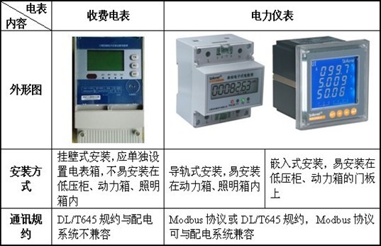 供gong電dian部bu門men一yi般ban給gei用yong戶hu實shi施shi一yi戶hu一yi表biao的de收shou費fei製zhi度du,即ji收shou費fei電dian表biao由you供gong電dian部bu門men統tong一yi安an裝zhuang。因yin此ci,收shou費fei電dian表biao除chu了le要yao有you技ji監jian局ju發fa放fang的de計ji量liang器qi具ju許xu可ke證zheng外wai,還hai需xu要yao當dang地di省sheng、市電力部門的許可才可安裝使用。在大型公共建築電能管理中,供電部門一般會在總進線處安裝收費電表。 電dian力li儀yi表biao在zai用yong戶hu安an裝zhuang收shou費fei電dian表biao的de基ji礎chu上shang,考kao慮lv內nei部bu電dian能neng計ji量liang與yu節jie能neng管guan理li的de需xu要yao安an裝zhuang,用yong於yu內nei部bu電dian能neng管guan理li。因yin此ci用yong戶hu可ke自zi主zhu選xuan擇ze采cai購gou,但dan應ying注zhu意yi製zhi造zao商shang是shi否fou有you電dian力li儀yi表biao(電能部分)的計量許可證。電力儀表可以完成對各回路、各樓層或各功能區的分項電能數據的采集,通過後台電能管理係統完成對大型公共建築的電能分項計量。 2、電力儀表在電能分項計量中的選型方案 電力儀表,是針對電力係統、工礦企業、公用設施、智能大型公共建築的電力監控與電能管理需求而設計的。它能高精度的測量所有常用的電力參數,如三相電壓、三相電流、有功功率、無功功率、頻率、功率因數、四象限電能等,采用可視度高的LCD來顯示儀表測量參數和電網係統的運行信息。電力儀表功能、型號繁多,價格也各不相同,電能計量方案也多種多樣,因此,應合理選配,達到較佳的性價比。 根據住房和城鄉建設部114號文件,對大型公共建築能耗數據實行分類、分項計量,對電能按動力用電、照明與插座用電、空調用電和特殊用電進行分項計量管理[1]。因此,針對宿舍、商鋪、病房等應計量到經濟核算單元的地方,可采用DDS1352或DDSF1352電表; DDS1352單相電表,又稱為ADL10;單相電能計量表,DIN35mm導軌安裝,寬度為1個模數(即寬為18mm),一次最大接入單相電流30A,精度1.0級。優點是尺寸小,價格低,缺點是沒有通訊功能,不能組網。 DDSF1352單相電表,又稱為ADL100,同樣為DIN35mm導軌安裝,寬度為4個模數,一次最大接入單相電流為80A,精度1.0級,具有峰、平、穀電能分時複費率計量功能,帶RS485接口,Modbus協議或DL/T645規約,可組網。主要應用於對單相電能的計量,常用在配電箱內。DDS1352及DDSF1352單相電表外形及應用如圖1所示: