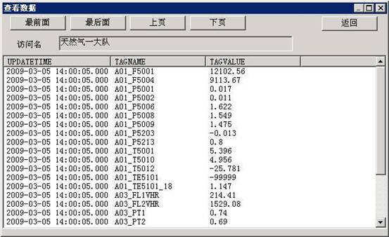 在這個界麵中用戶可以看到本數據表最近一次交互的時間、交互的點名、以及交互的數據值。受窗口大小的限製,信息是分頁顯示的,用戶可以通過上方的按鈕察看不同頁的信息。