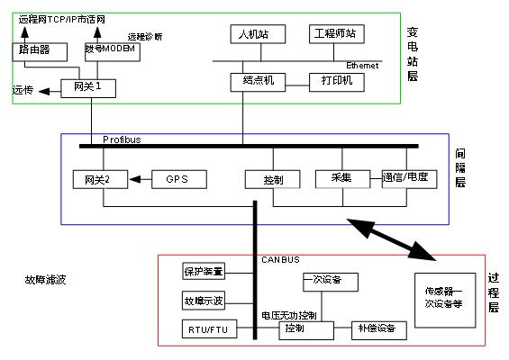 變電站通信體係IEC61850將變電站通信體係分為3層: 變電站層、間隔層、過程層。在變電站層和間隔層之間的網絡采用抽象通信服務接口映射到製造報文規範(MMS)、傳輸控製協議/網際協議(TCP/IP)以太網或光纖網。在間隔層和過程層之間的網絡采用單點向多點 的單向傳輸以太網。變電站內的智能電子設備(IED,測控單元和繼電保護)均采用統一的協議,通過網絡進行信息交換數字化變電站的的基本特征