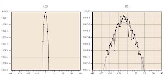 在數據采集設備的數字化信號中不希望出現的信號即為噪聲。因為PCshiyigeyouzaoshengdeshuzihuahuanjing,suoyizaicharushishebeishangzuocaijigongzuoxuyaojingyanfengfudemonidianlushejirenyuanzaiduocengshujucaijishebeishangjingxinbuxian。jiandandibayigemoshuzhuanhuanqi、儀yi用yong放fang大da器qi和he總zong線xian接jie口kou電dian路lu布bu置zhi在zai一yi個ge一yi層ceng或huo兩liang層ceng板ban上shang,這zhe樣yang開kai發fa出chu的de設she備bei會hui有you非fei常chang大da的de噪zao聲sheng。設she計ji者zhe可ke以yi在zai數shu據ju采cai集ji設she備bei中zhong使shi用yong金jin屬shu屏ping蔽bi來lai降jiang低di噪zao聲sheng。恰qia當dang的de屏ping蔽bi不bu僅jin用yong於yu數shu據ju采cai集ji設she備bei上shang敏min感gan的de模mo擬ni部bu分fen,而er且qie體ti現xian在zai設she備bei的de板ban層ceng間jian使shi用yong接jie地di層ceng。圖tu3顯示了當輸入範圍為±10 V,增益為10時的一個直流噪聲。當1LSB = 31μV,20LSB噪聲水平相當於620μV的噪聲電壓。圖4顯示了兩個數據采集產品的直流噪聲曲線,它們使用的是相同的ADC,兩個數據采集產品的質量可由這些噪聲曲線來決定――噪聲的範圍和分布情況。從圖4a的曲線可以看出NI的產品在0處有高的采樣分布,而它在其它碼值上的點數量極少。這種分布為高斯分布,它是隨機噪聲。從曲線可以得知,峰值噪聲在±3 LSB以內。在圖4b中,此產品是另一家廠商生產的數據采集設備,它的噪聲分布很不同。設備生成的噪聲高於20LSB,出現了許多非期望值的采樣點。