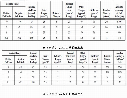 眾所周知,數據采集卡的絕對精度不僅僅等同於分辨率,還和偏置誤差,增益誤差等多個參數有關。X係列使用的ADC分辨率仍然為16位,但各量程的精度和M係列同樣分辨率的產品相比卻有大幅提升,使得測試可以更加精確。下麵表1和表2給出了M係列和X係列中同級別板卡的精度對比。