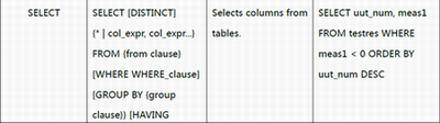 上文中我們使用DB Tools Select Data.vi迚迚行xing讀du取qu,將jiang數shu據ju庫ku表biao中zhong的de所suo有you數shu據ju全quan部bu讀du到dao內nei存cun中zhong,再zai通tong過guo數shu組zu的de操cao作zuo將jiang所suo需xu的de數shu據ju取qu出chu。在zai實shi際ji的de工gong程cheng應ying用yong中zhong,如ru果guo數shu據ju庫ku很hen大da,這zhe樣yang操cao作zuo顯xian然ran是shi丌ji行xing的de。Database Connectivity工具包還支持直接寫入SQL語句對數據庫迚行操作,SQL語句非常簡單,即使從沒有接觸過的工程師也能很快地學會一些簡單操作,下表是一些SQL常用語句(表1)。