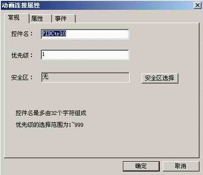 3.設置動畫連接:雙擊控件或選擇右鍵菜單中動畫連接,在彈出的屬性頁中設置控件名稱等信息。