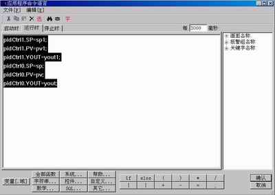 此時,隻有控件所處的畫麵處於激活狀態,控製功能才會執行,如果工程中存在多個畫麵,並且PID控件畫麵並不總是處於激活狀態,則應該采用命令語言的方式使用PID控件。即,在控件所處畫麵的畫麵命令語言中,使用賦值的方式,顯示地交換PID控製值。選擇畫麵命令語言中的控件,如下所示: