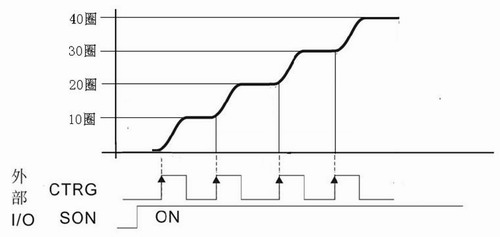・PR模式DI GTRG 命令觸發信號上升沿給定,伺服馬達按照寄存器規劃運動,如圖3所示。