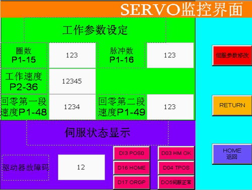 相對於傳統伺服位置控製,包裝機工藝數據由人機界麵設定,伺服獨立完成,無需使用專用PLCdingweimokuaijikeshixiangaojingdudeyundongdingweikongzhi,chengbendi。peixianjiandan,shujutongxunkongzhibuhuicunzaiminglingmaichongshoudaoganraohemaichongdiushiwentikongzhikekao。madasudujicunqisheding,0~2000r/min任意可調,無需修改PLC指令脈衝頻率,突破了PLC定位模塊200K脈衝發送能力的瓶頸。伺服驅動器自帶的原點回歸功能,設置簡單,可以定位於編碼器Z相零位,定位精度更高。便捷的通訊方式,可以通過HMI對伺服所有參數和伺服工作狀態實時監控,界麵直觀,維護便捷。