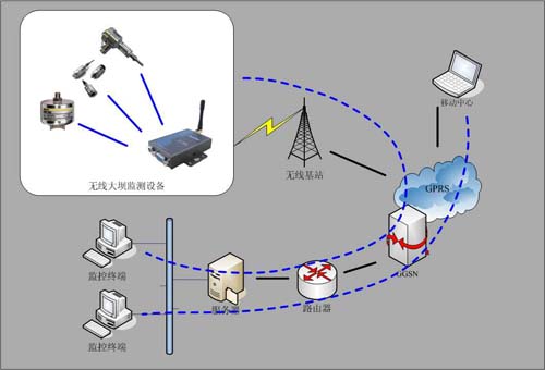 我國是一個江河眾多,水災頻繁,水資源缺乏的國家。隨著我國水利工程建設的深入開展,遠距離、超長距離調水、儲水相繼出現,現有的基於雙絞線、載波等通信手段越來越滿足不了行業的需要。大壩的安全監測、圖像監控、動力信息的采集、控製;泵站、閘門的動力采集、控製、圖像監控、語音調度等,都對通信網絡提出了更高的要求。 一、現階段水利信息化通信現狀 隨著防汛通信信息量的日益增長,現階段水利通信網越來越難以滿足防汛數據、調度語音、圖像傳輸的需要,在覆蓋範圍、實時性寬帶傳輸、組網結構、工程施工、網絡化調度等方麵越來成為各級指揮調度、預報保障體係發展的瓶頸。 二、GF係列無線通信產品在水利方麵的應用 對於普通的MCU係統需要在使用GPRS模塊的上位機統中嵌入TCP/IP這是一個複雜而繁瑣的工作。基於提供一種簡便實用的通訊解決方案的需求,公司開發了GF係列DTU無線數據傳輸終端,它內嵌了TCP/IP協議棧,為不帶TCP/IP通信協議處理能力的設備提供TIP/IP通信能力。GF係列DTU無線數據傳輸終端主要應用於水利水電行業的遙測信息係統的信息采集、傳輸和處理。為中國的水利提供各種相適應的,完整的水情信息、工情信息、旱澇信息和水資源調度信息的采集、傳輸和信息處理的解決方案。適合各種野外環境水文、水質檢測。能夠在任何有功耗限製場合下可靠地工作。也可應用於移動、手持設備及其它電池供電的係統。 GF係列無線通信產品可以根據不同測站需求選擇,並應用於一個測控係統中,主要應用的範圍如下: ★水情(水文)自動測報係統 ★水情信息和現場工情圖像自動測報係統 ★水資源實時監測管理係統 ★水環境及水質自動監測係統 ★閘門自動監控係統 ★灌溉及節水農業自動化係統 ★渠道、泵站自動監控 ★防汛減災指揮決策係統 ★常規水質監測係統 ★水質自動/移動監測係統 ★水土保持監測係統 三、GF係列無線通信產品在水利行業中的體係結構: GF係列無線通信產品主要實現遠程遙測遙控遙信,如雨量站,水位站、閘壩站、現場工情圖像采集站、水質監測站、計量站、管網壓力監測站、管網加壓站、泵站監控站。