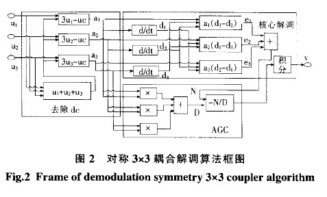 在3x3耦合對稱情況下,從幹涉儀輸出的3路電流信號,經I,v變換電路和放大電路後的輸出為: