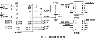 由於省略了 Modem通訊握手的相關信號 ,使得采用 1TTL/RS232的電平轉換芯片 MAX3232實現兩個串口的接口成為可能 ,並在實際的使用中得到了驗證。