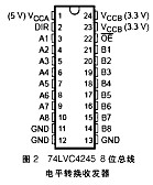 本模塊開發的關鍵之一是 PC/104總線的接口,包括控製總線 、地址總線和數據總線 ,采用專用的 3 3V/5V電平轉換芯片74LVC4245以保證不同電平電路的高速互連 ,74LVC4245是一塊A3 8位的總線收發器 ,並可以在5V和3.3V係統之間實現電平的轉換 。