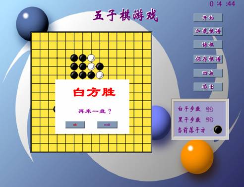 - 遊戲過程回放,可以將前一步局棋按照落子順序一步一步顯示出來。