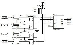 外部開關信號采集使用光耦(IC1,IC2隻畫出其中四路)作電器隔離,光耦輸出端使用一個數據緩衝器74HC244(IC9)對光耦輸出信號進行緩衝後傳送到CPU的數據總線供CPU讀取。(見圖6)