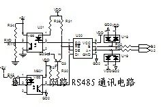 撥碼開關提供用戶一個簡化的人機接口,用於設定RS485通訊中的地址、波特率、數據格式等設定功能,撥碼開關(SW1)的10位數據口都接10k電阻上拉到Vcc,電路使用一個74HC244(IC5)數據緩衝器,把撥碼開關的狀態傳送到8位數據總線,剩餘兩根數據線則直接接到CPU的I/O端口。(見圖2)