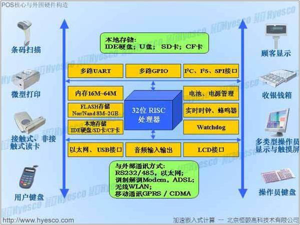 在金融、商業、以及其他各種行業,存在大量的交易處理型計算,其信息化與智能化持續地產生著新的需求,推動著人們去創造各種解決新問題、任務獨特、高效便捷的專業POS終端。 縱觀行業發展,新形勢要求POS終端在計算速度方麵、多任務處理方麵、安全加密方麵、人機交互方麵、移動便攜、及降低能耗方麵比以往有更大的提升。為此,需要有更先進的軟硬件平台解決方案。 微處理器作為整個POS終端設備的“心髒”,其性能和功能的提升為重中之重。觀察和實踐證明,基於傳統MCU的POS計算正經曆著向32位嵌入式RISC處理器升級的過程。32位RISC處理器由於內嵌了多種功能模塊,顯現出特別的適用性。北京恒頤www.hyesco.com憑借長期對嵌入式計算的專注和對相關客戶的支持服務,積累了多款麵向POS終端的係統平台解決方案。 |