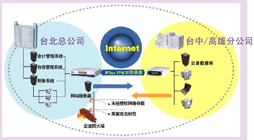 當今企業常常為了控製成本、貼近市場、方便獲取信息等因素,而將企業辦公室、工廠、倉庫分別設立於不同地區,甚至是跨越不同國家。 某企業為一消費性商品經銷商,總公司設立於台北,陸續在台中、高雄設有地區辦公室,並在台北總部采用了庫存管理係統、財務管理係統。但是,受限於該係統缺乏Web接jie口kou的de設she計ji,遠yuan在zai台tai中zhong及ji高gao雄xiong的de分fen公gong司si無wu法fa實shi時shi查zha閱yue台tai北bei總zong公gong司si的de存cun貨huo,必bi須xu以yi電dian話hua方fang式shi進jin行xing人ren工gong詢xun問wen,業ye務wu人ren員yuan也ye經jing常chang對dui存cun貨huo狀zhuang況kuang的de響xiang應ying遲chi緩huan怨yuan聲sheng載zai道dao。同tong時shi,因yin為wei產chan品pin種zhong類lei繁fan多duo、數量龐大,各分公司無法及時獲得最新的產品資料。 在網際網絡及電子商務的潮流中,該公司采用了威達佳虛擬專用網服務器VPN-4800/1400,通過VPN技術解決了現有的問題。在總公司內部特定網段與台中、高雄分公司之間建立起VPN虛擬專用網絡,使分公司與總公司宛如在同一個局域網環境中一般。從此分公司的業務人員便能實時對庫存、財務係統作查詢,對客戶的交貨服務也更有效率。 效益: 原本僅限於台北總公司內部的擴充管理係統,經由VPN虛擬專用網絡與各分公司連結,不需對原來係統進行任何修改,也能供各分公司使用,增進企業運作效能的同時節省了運營成本。 不需設置專線,僅需使用一般ADSL聯機,通過Internet也能達到專線的安全性,同時VPN安全通道還具有快速建立、變更的彈性。 威達佳虛擬專用網服務器具有防火牆、多路負載平衡功能,使企業網絡聯機更有保障。