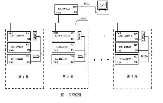圖1 框圖說明: CAN網絡共有科威9台PLC,一個CAN主站與8個從站進行CAN數據交換,而上位機隻與CAN主站進行數據交互。上位機與CAN主站PLC是通過編程口進行數據交換。 8組控製單元,每一個單元隻是一個CAN網絡從節點。組內以RS485固定協議進行數據交換,其中CAN從節點PLC是組內的RS485的主節點。 CAN通信或RS485通信,其通信狀態是可見的,保證係統數據的通暢及係統工作的安全。